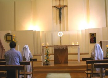 Se lo cercherai non sarai solo: noi Figlie della Chiesa siamo qui e preghiamo con te. Siamo in sette e ci alterniamo ogni ora per adorare insieme a chi, passando, sceglie di sostare davanti alla presenza viva di Gesù. Puoi sentire tutto il calore e l'affetto che scaturisce dall'unione nella stessa fede, fede che celebriamo comunitariamente nell'Eucarestia di ogni giorno e nella Liturgia delle Ore. Ti siamo vicine mentre ci rendiamo disponibili a offrire la nostra preghiera e la nostra vita per la Chiesa universale, per il Papa, per questa nostra città di Roma e per il mondo intero, per chi soffre ed è in difficoltà.